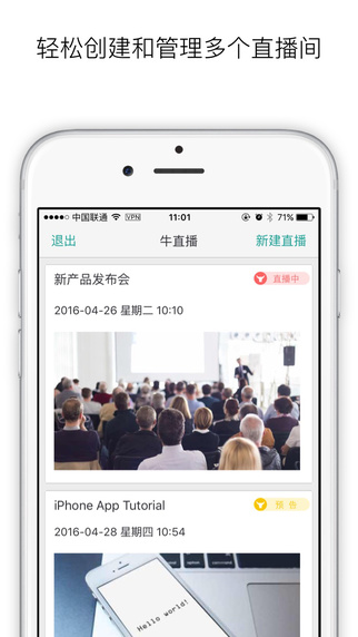牛直播下载手机版app:一款为各行各业服务的电视直播类手机客户端,为你提供各个行业的各种套直播视频,包括新品发布会直播视频、金融直播、医疗直播、科技直播等等,快来下载吧!