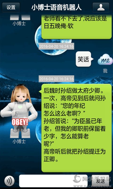 小博士语音机器人app手机版软件下载是一款可以陪你玩的手机软件,还能给你讲各种各样的笑话哦!还能帮你查询天气情况,还有各类的百科知识它全都知道哟!