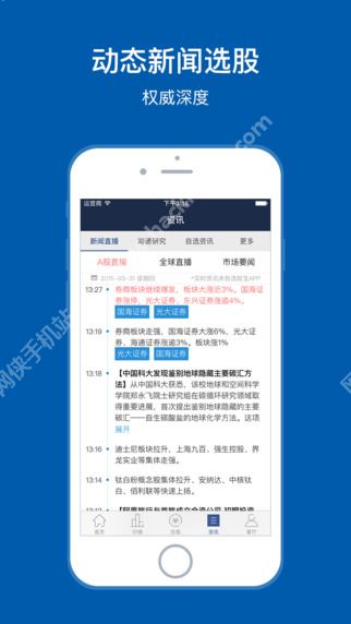 3、咨讯权威深度,新闻直播及时把握市场脉搏,新财富金牌研究员提供深度的市场解读;