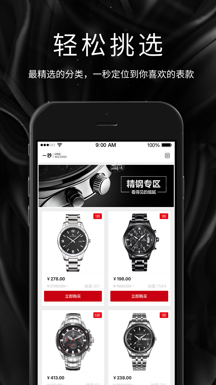 一秒app是一款手表购物手机软件,汇集了全球各大精选品牌手表,超好的质量,超低的价格,客服24小时在线为您服务!需要的快来下载参与选购吧!