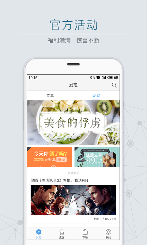 3.新增“发现”版块,包括实时新闻资讯和各种福利活动;