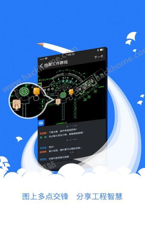1、可在聊天中发送、浏览并讨论CAD、DWG图形文件或照片,再也不用借助其它工具啦;
