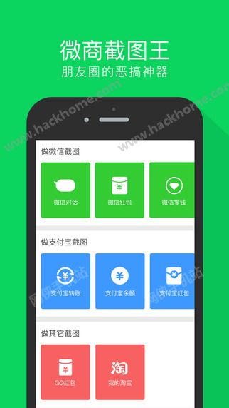 1、微商截图王是一个自娱自乐的装逼神器,你可以用它轻松生成微信对话、微信红包、微信零钱的界面;