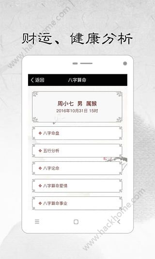 3、八字算命-提供八字命盘、五行分析、八字论命、爱情事业、财运健康查询。