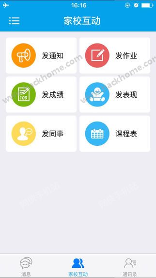 2、孩子的作业、通知等信息随手查阅,以班级为单位自动生成班级圈;