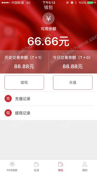 3、并还给用户提供了余额查询、交易记录查询、提现、信用卡还款等实用功能。