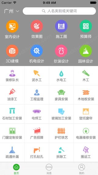 3、效果图,施工图,建筑师,工人等接活求职更加方便,来解决装修装饰行业找人合作的问题;