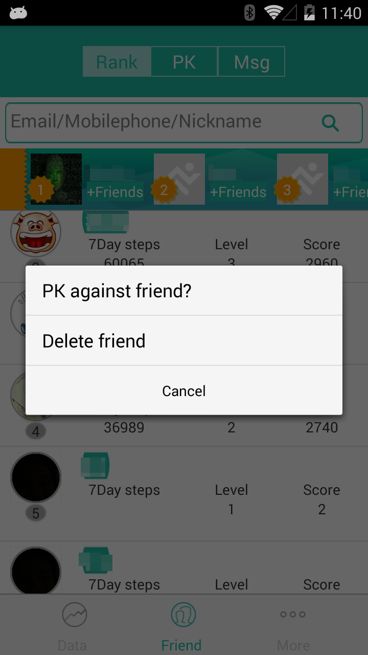 4、用户可以通过手机应用随时查看,了解自己的运动及睡眠数据,并可以分享数据、还可以通过加好友进行互动、PK。