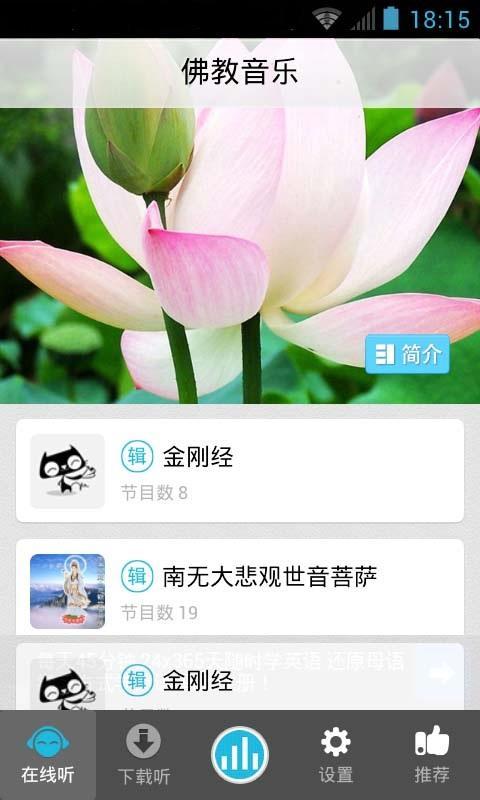 1.净化心灵,舒展心情,修身养性,使人向善!居士们诵经,内容丰富,精彩纷呈,不断更新!愿所有众生种种烦恼、种种痛苦悉皆消除!催你起床、伴你入眠,功能独特,一试便知!在线听!下载听!随身听!边走边听!想怎么听就怎么听!