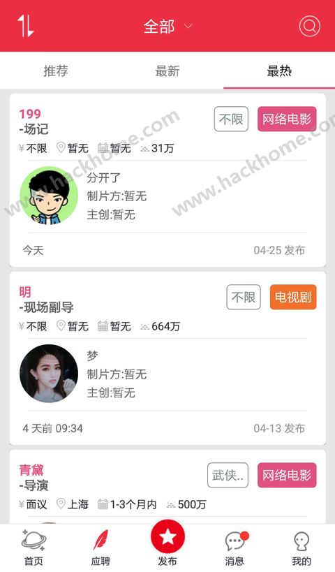 5、如果你是剧组制片方,在红猩猩APP有海量影视从业者及演职人员可供选择,一个软件完成所有招聘;