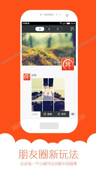 2、一张图片迅速拆成9宫格或8宫格,应用于朋友圈和陌陌头像;