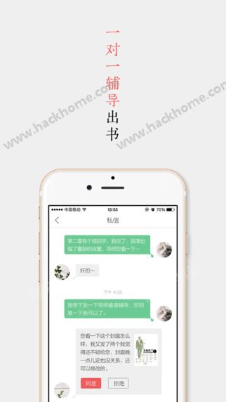 5、【社交】关注喜欢作者、作品、类别,及时收取作品更新;作者与出版人私聊或在辅导小组中讨论,一对一的专属服务。