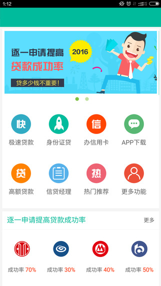 现金贷款软件下载手机版app:一款为你提供各种信用卡借贷服务的手机软件,不论你喜爱哪一个银行的信用卡,都可以在线提出借贷申请。支持自助开户,在线申请,极速借贷服务!