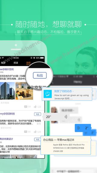 2、在APP里用户有自己的社交圈,可选择加入喜欢的频道,频道里可发布动态并在线交流互动,用户线上交流线下活动;