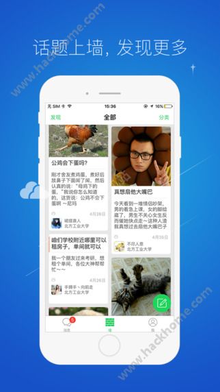 4、墙:你可以建立一个私密话题,也可以把它发布到“墙”上,让更多人看到。一个墙就是一个圈子,在这里,你能找到感兴趣的话题,趣味相投的人。