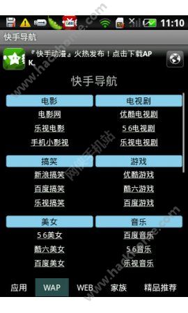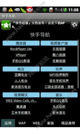 2、专为移动终端用户精选定制的视频网站网址及应用大全移动天地,快手一指!视频快手是开放移动互联时代首款移动导视引擎,已发布16款Android终端应用,您可在家族界面按需选择。