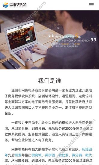 2、温州市网传曾获得浙江省科技型企业和温州科技创新型企业等荣誉称号,公司拥有强大的技术研发和电商运营团队,历经四年先后研发并推出微商城、微拼团、微批发、微分销、微代理等系列微信o2o智能招商系统;