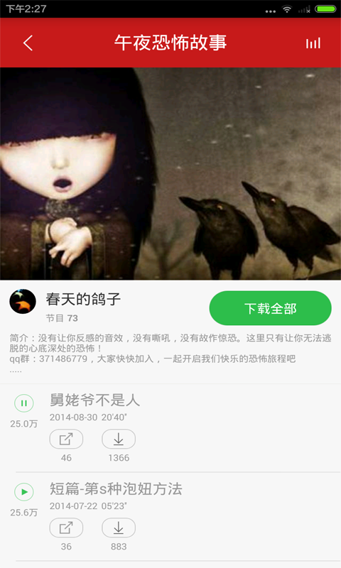 特点一:各种恐怖悬疑小说,故事,广播剧,每天更新,睡前来一发。