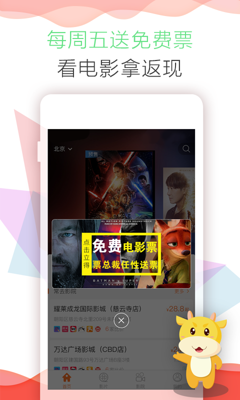 关注票贩儿微博微信每周五就送影票,更有返现券全年发放,出入影院不用钱!
