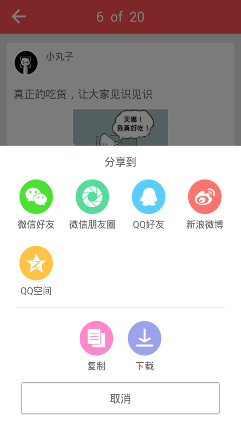 2.可以分享到微信、朋友圈、QQ空间、QQ好友等,给您的朋友带来每天的好心情。