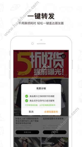 2、仅需要一键,即可分销到朋友圈,真正实现一键分销功能;