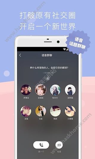1、语音群聊:8人纯语音聊天,各类话题实时更新,如追星、明星idol、二次元动漫、运动健身、宠物、网红、摄影、旅游等;
