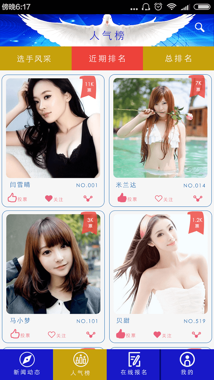3、在线大众化选美大赛网络平台,火爆拉票,助你成为未来大明星。