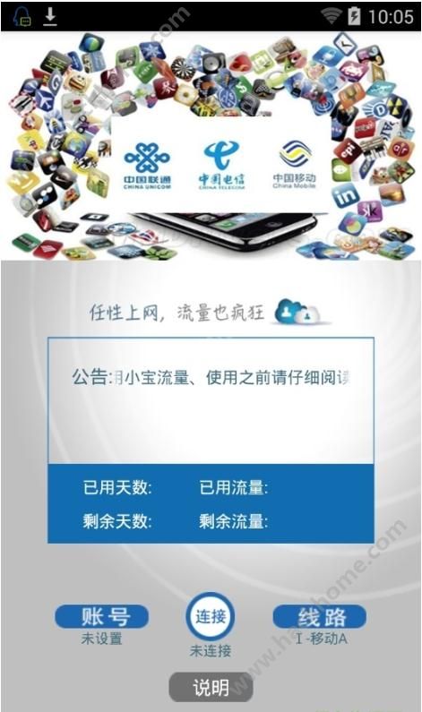 小宝流量软件下载账号app下载是一款非常实用的应用软件。你可以通过这里来进行免费上网,完全不用耗费自己的流量,以后再也不用担心没有流量用啦!赶快下载体验吧!