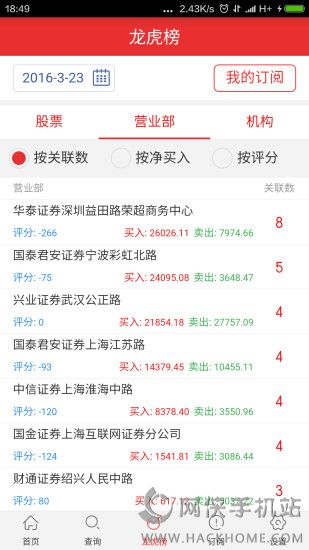 3、用户可以方便的通过龙虎大师订阅营业部,查看每天营业部买卖情况;
