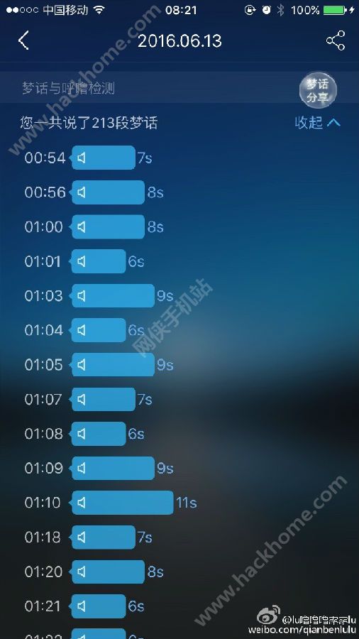 4、早上点击结束睡眠,便可查看自己的梦话信息,还可以听自己的梦话。