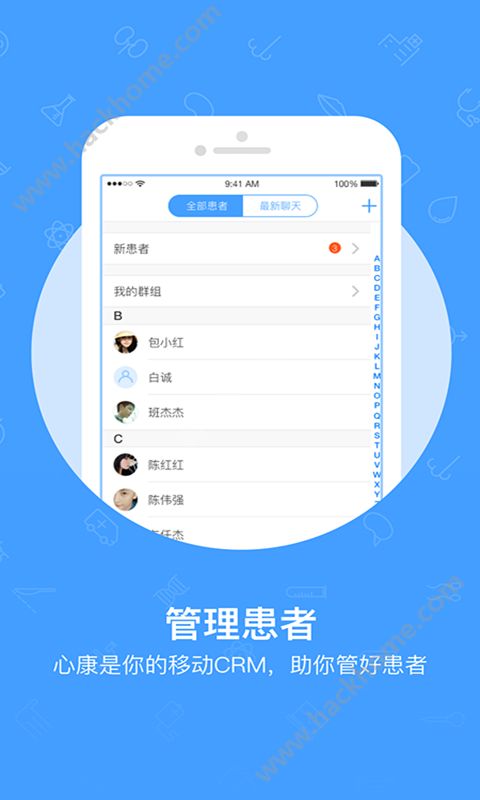 3、患者管理,对就诊患者设置分组管理、实时交流,把控病情,管理患者更便捷;