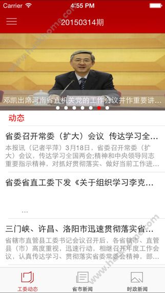 3、主要包括三个模块:工委动态、省市新闻和时政新闻三个模块;