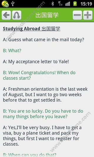 3、“情景话题”根据不同聊天场景,提供实用的聊天内容,让你可以随意畅谈。支持朗读功能,学习纯正口语发音。