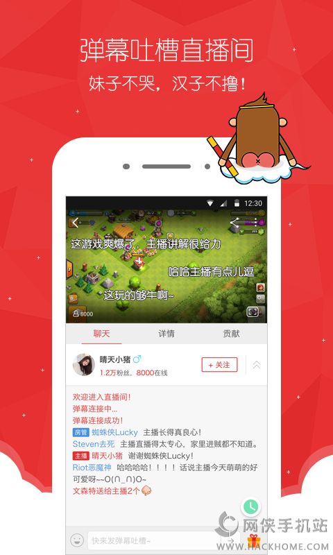 4、手游直播降临:弹幕装填完毕,快来和喜爱的游戏主播来一场邂逅吧;