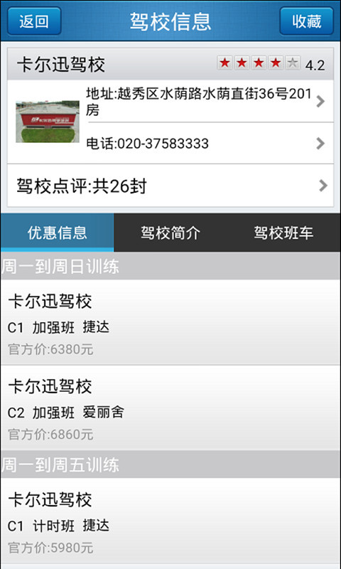 2、附近驾校:准确定位您所在的位置,找到离您近的驾校;