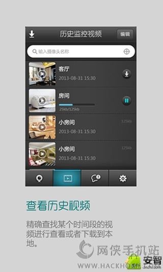 2、通过Android平台上的客户端实时视频察看、异常告警、视频的存储和点播等业务;