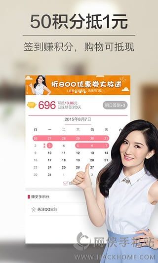 4、通过签到、下单、推荐好友购买等方式轻松赚积分,积分可以免费兑换上百种商品哦;
