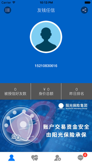 (1)通过友钱任信,可以获得朋友授信,了解自己在朋友圈中的信用状况;