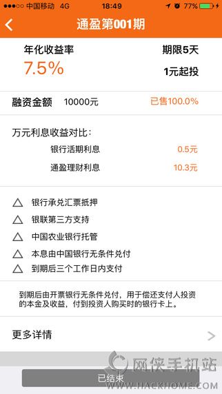 4、银行票据理财,到期后银行100%无条件承兑,理财有保障,已交第三方平台备付保证金,让您放心;