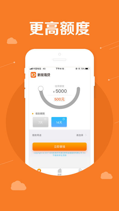 新版海贷提供金额500元、5000元,时长7天、14天的急速借款体验,主要解决用户在日常生活中的小额借款需求,为了让用户能够方便快捷享受到信用贷款服务,开发了全自动的小额手机贷款审批系统,借钱申请流程简单,实现现金快速到账,无需分期,旨在为客户提供快速、简单、安全的小额贷款服务。