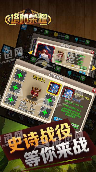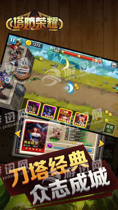 塔防荣耀是一款带有魔幻色彩的RPG策略塔防冒险游戏!你将会指挥一场场守城战役,雇佣士兵勇士,在城墙上对进攻的敌人进行打击,丰富的收集要素等你来体验!