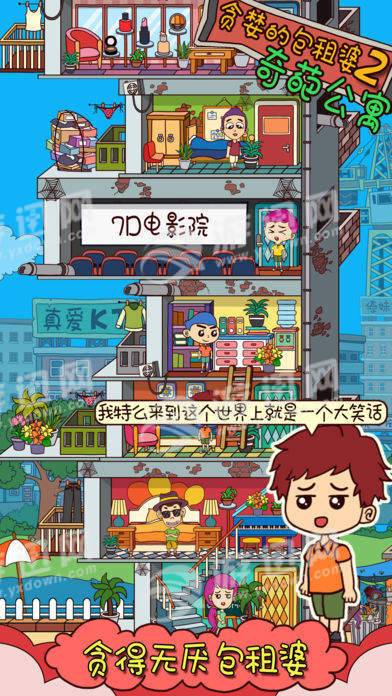 贪婪的包租婆2奇葩公寓是一款超级搞笑奇葩的模拟经营类游戏!你将会成为一个腰缠万贯的包租婆,各种违章搭建,让越来越多的居民入住!快来经营你的摩天大楼吧!