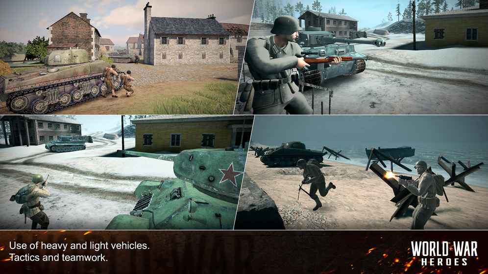 《世界战争-英雄》Android上最棒的二战题材在线射击游戏!与世界各地的士兵一较高下!本游戏里的各种军用载具将带你重温二战!《世界战争-英雄》拥有7种模式:?专家模式提升伤害,并使游戏更为真实。?死亡竞赛个人赛战斗!为自己而战。得分最高的玩家将获得回合的胜利。被命中1-2次你就将丧命,和现实生活中一样。?团队死亡竞赛两支队伍一较高下。一轮游戏结束时,得分最高的队伍胜出。?炸弹模式一队携带并安放炸药;另一队必须阻止他们!?团队生存赛两支队伍进行战斗,队员死亡后无法重生。至少有一名存活成员的队伍赢得胜利。?团队坦克战两支队伍驾驶坦克一较高下。一轮游戏结束时,得分最高的队伍胜出。?自定义模式您自己设定规则,创建自己的游戏!创建游戏房间时,把统计数据窗口的游戏号码发给您的好友,邀请他们和您一起玩吧!特色:?7场富有传奇色彩的二战战役!?4种载具,来自不同国家:美国、俄国、日本和德国!?5种游戏模式,外加规则自定的自定义模式!?57种独特的武器:手枪、突击步枪、机关枪、霰弹枪等等!*提醒:参加锦标赛并赢取奖励、组建战队!更多特色:???登录可领取每日免费礼物???登录可领取每日免费礼物以及每日免费任务!登录可获得每日免费物品。不要错过额外经验和资金活动! ???50多种武器。自定义您的武器和皮肤!???50种武器装备:步枪、手枪、汤普森冲锋枪、微冲、手雷、火箭和护甲!自定义您的武器,获得独特的测试装备-更换颜色,获取包括枪管、枪托和瞄准镜在内的一切可自定义选项。???装备升级系统???升级装备,变得更强!夺取第一名,将胆敢挑战你的人一枪爆头!定期更新和新特色等待着您。拥有本年度最佳画面和完美音效的《世界战争-英雄》定会让您欲罢不能!祝你好运,士兵!========================Facebook:https://www.facebook.com/WorldWarHeroesOnline/YouTube:https://www.youtube.com/channel/UChMfgo6g8ri0FaAR-SpYpXw