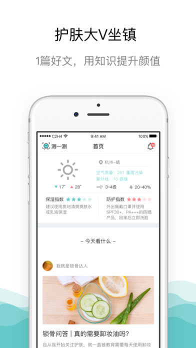 1、【拍照测肤】不用买硬件,告别美容院,一次专业的肤质检测,一个手机就可以轻松搞定; 2、【智能分析】从肌龄、肤色、出油、痘痘、黑头、毛孔、光滑度等多个角度,全面分析肤质; 3、【产品推荐】以你的肤质为依据,结合科学的护肤理论,定制个性化的化妆品护肤品方案; 4、【护肤科普】一众护肤大V坐镇,陪你聊成分、谈功效、扒内幕、挑好货,从此理性剁手; 5、【同肤质社区】美妆心得、护肤经验……甲之蜜糖,乙之砒霜,还是和同肤质的人聊最靠谱; 6、【肤质记录】帮你记录皮肤的每一点改变。新换的护肤品到底好不好用,让皮肤自己告诉你。