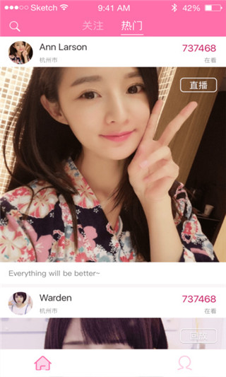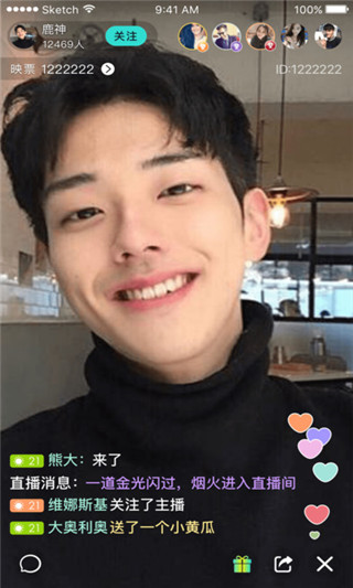 【全民直播】随时随地,一键轻松开启视频直播 【流畅清晰】高码率播放,画面清晰流畅 【智能美颜】自动智能美颜,更白更美丽 【实时直播】告别延迟,实时直播 【私密聊天】互动不局限,私信拉近彼此距离 【酷炫礼物】边看视频直播边刷礼物,获取主播好感