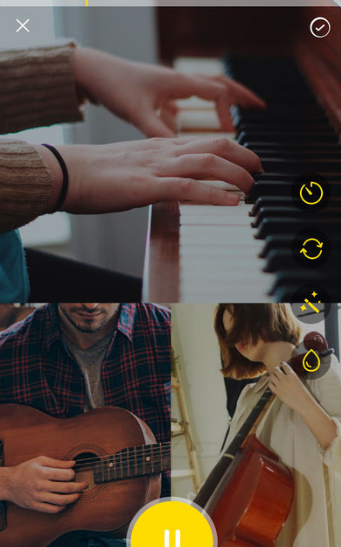 1、同框演奏——支持最多三框合作。 2、轻松拍摄——全屏触控、点击拍摄、倒计时自动开始。 3、语音私聊——感觉对了就call,尽情聊天吧。 4、视频推荐——每天推送各类音乐精品视频,请你为这些视频“添油加醋”。 5、追踪关注——不放过任何心仪的人,总有一个适合你。
