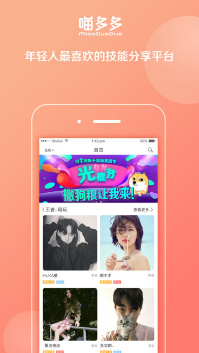 【高颜值】千万女神、男神都在这里等你约玩 【最真实】实名认证、身份认证、职业认证多维度保障!拒绝照骗! 【最有趣】王者荣耀、视频聊天、声优聊天…你想约的玩伴都在这里 【最便捷】极速注册,一键下单,对于喜欢的人就应该直接一点 【最靠谱】脸和身材决定了你是否愿意了解Ta的内在,丰富绚丽的个人主页帮你架好相遇的桥梁