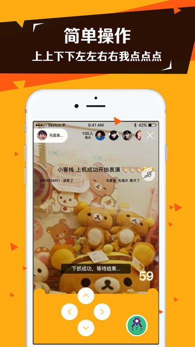 1、最潮最萌的手机抓娃娃APP。 2、真实的抓娃娃体验,抓取率极高,全国包邮。 3、随时随地真机操作,360°清晰视角效果,上千款火爆公仔等你抓回家。