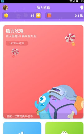 脑力吃鸡答题是一款全新上线的答题赢现金活动,每天都有着非常多的奖励,玩家们可以和自己的小伙伴一起参与答题,答对的题目越多那么奖励的金额也就越高,这简直就是讲知识转换为金钱啊!到了验证你所学知识有多深的时刻到了,还在犹豫什么?赶紧前来加入参与答题,海量大奖等你来拿!