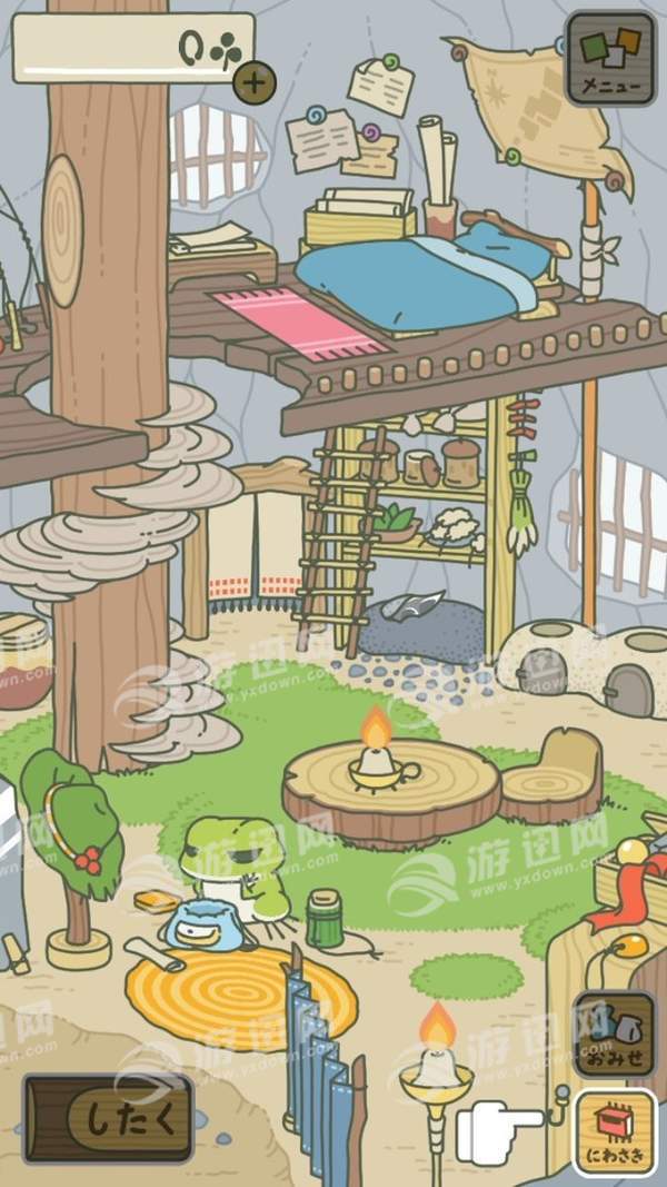 2.青蛙在家的时候按左下角的按钮可以进行收拾行李,带上便当,可以在商店买,护身符和特殊用具,让旅行收益更多,效率更高